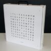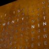 Die Frontfläche dieser Qlocktwo besteht aus einer Stahlplatte, die in einem aufwändigen Verfahren künstlich verrostet wird. Der Oxidierungsvorgang wird dann gestoppt und die Oberfläche fixiert. Jede dieser Frontplatten ist einzeln nummeriert, und jede ist ein Einzelstück, da der Prozess des Verrostens nicht zu hundert Prozent genau kontrolliert werden kann. Die Buchstaben werden mit Hi-Tech-Lasertechnik präzise aus dem Stahl ausgeschnitten. Die Frontplatte wird dann mit Magneten auf der Grundplatte aus lackiertem Holz gehalten. So kann die Front ganz einfach ausgewechselt werden. Sieben ausgesuchte Farben stehen zur Wahl und erzeugen im Wechselspiel mit ihrer Umgebung Kontraste oder Übereinstimmungen. Mehrere andere Materialien sind ebenfalls erhältlich, von poliertem Acrylglas, gebürstetem Edelstahl bis zu Blattgold – browsen Sie einfach durch unsere Produkte.